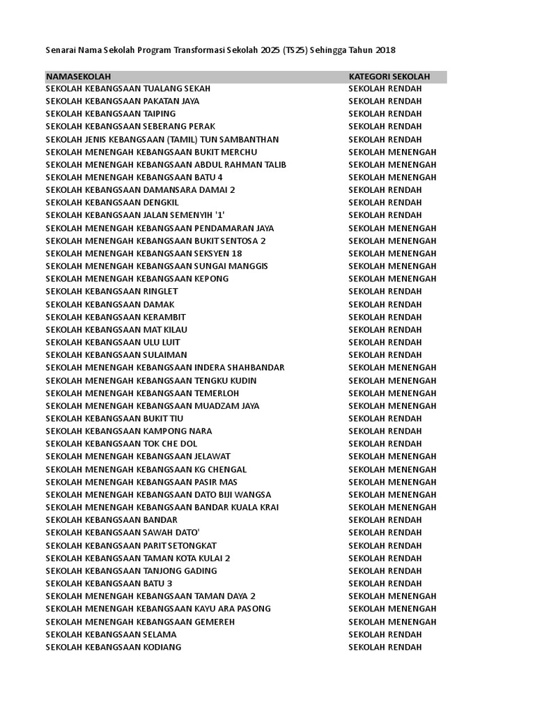 Senarai Sekolah Rendah dan Menengah 31 Mei 2019 xlsx 148 MB 19895 muat turun Popular. Sekolah Kebangsaan Batu 7. Senarai Sekolah Rendah dan Menengah Jan 2020 xlsx 148 MB 48448 muat turun Popular.