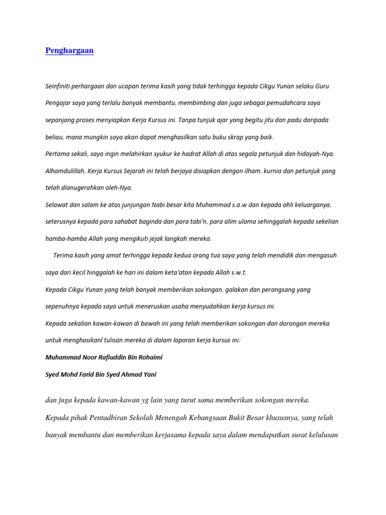 Contoh Penghargaan Untuk Kerja Kursus Sejarah Pdf